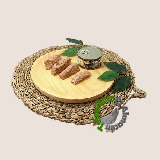 Proteína bruta 10,1%, Fibra bruta 0,5%,, Grasas 8,3%,. Ceniza bruta 2,1%,, Humedad 77,7%,, Taurina (total) 590 mg/kg.